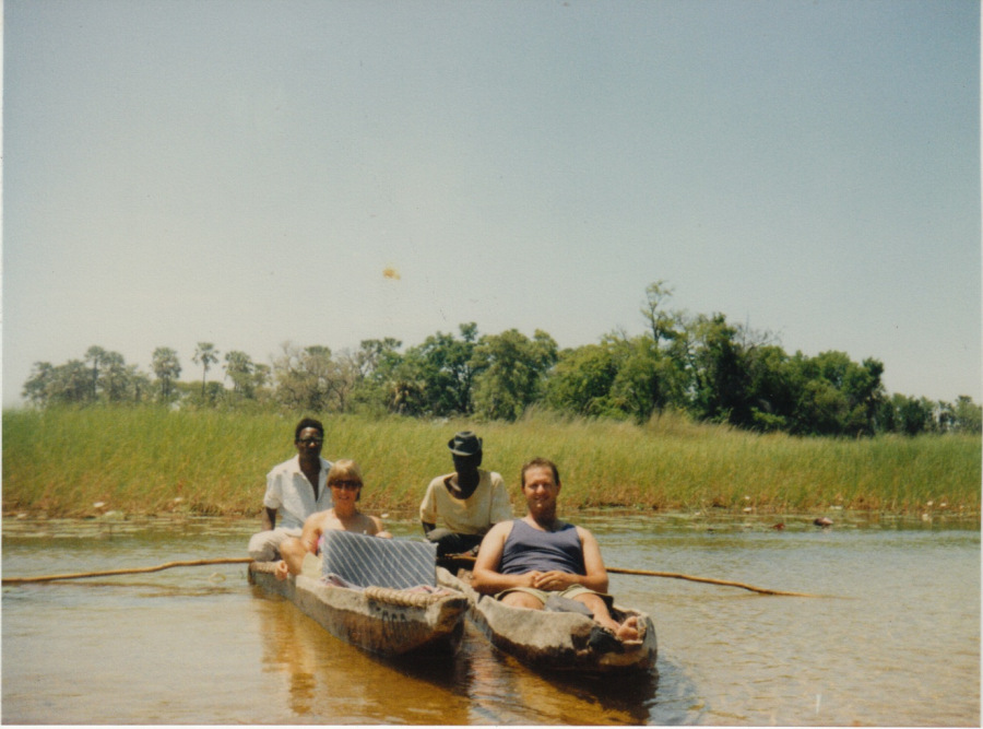 15. The game guide and safari lodge manager: chilling with Shirley Hunter on the Boro River. Okavango Delta, 1988.