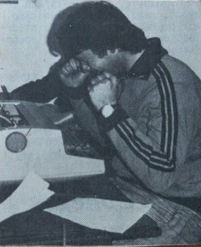 7. The journalism student, learning about deadlines on Rhodeo rag, Rhodes University, 1977.