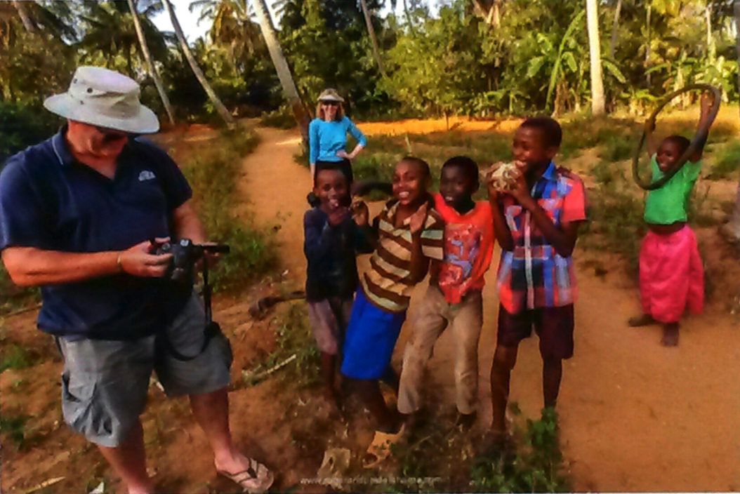 22. Impressing the locals with my mod cons: on Chole Mjini Island in the Zanzibar archipelago, while researching my travel magnus opus, African Icons (Pat de la Harpe looking on), 2014.