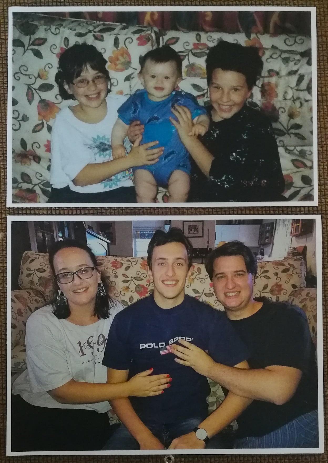The progeny: Bella, Ben and Daniel, 21 years apart – same couch.